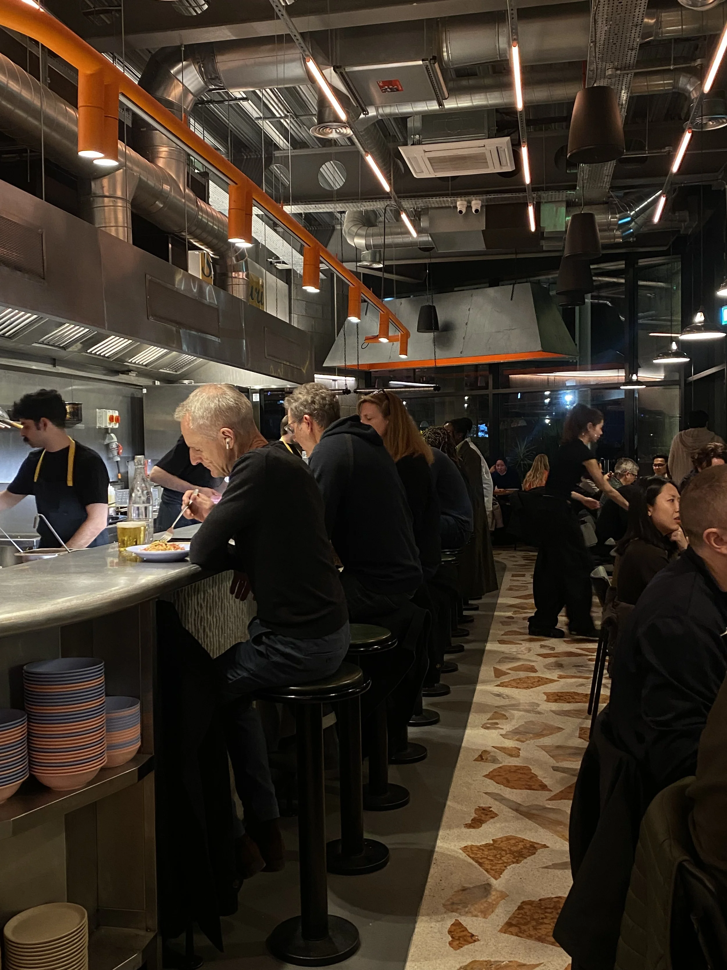 当Stella发给我Vogue写的评价: The once-impossible-to-book Leytonstone legend is now, thankfully, far more accessible following a move to buzzy Shoreditch. Gone are the no-frills interiors and homely vibes, replaced with something far more sleek and industrial: exposed brickwork and stainless steel countertops, though the iconic original yellow sign has been preserved.